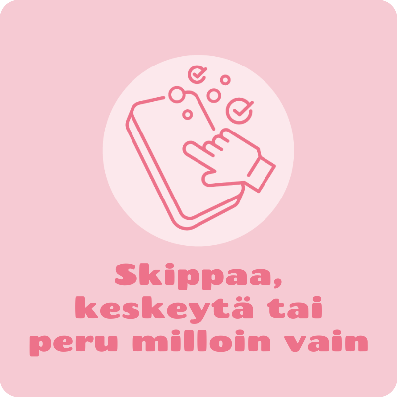Tilaa Smuuti Skin -suosikkisi haluamisi väliajoin ja säästä 10% joka kerralla! Ei säätöä, ei sitoutumista, vain helppoa ja hauskaa ihonhoitoa. Skippaa, keskeytä tai peru tilaus milloin tahansa.