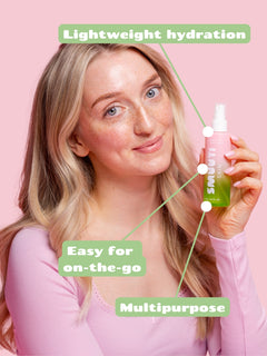 Suihkutettava kasvovesi tuo kasvoille välittömästi kosteutusta ja virkistystä. Raikas kasvovesi saa tehonsa hyaluronihaposta ja vesimeloniuutteesta.